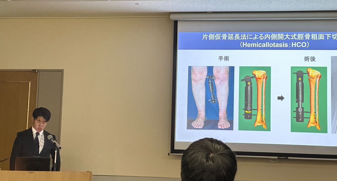 発表者:中村 英一 副院長 「脛骨粗面下骨切り術における歩行時の膝関節面上の荷重線位置の軌跡について」 形式:口演 |