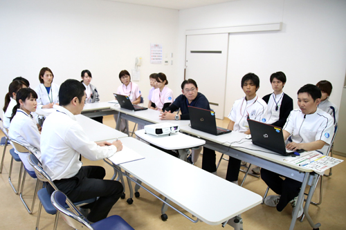 患者様の回復具合や現在の問題点を多職種で共有することで、問題点があれば直ちに対応し、漫然としたアプローチにならないようにしています。(週2~3回、月・火・木) 必要に応じ患者様やご家族にも出席していただき、リハビリテーションの現状と今後の方向性の説明を行っています。