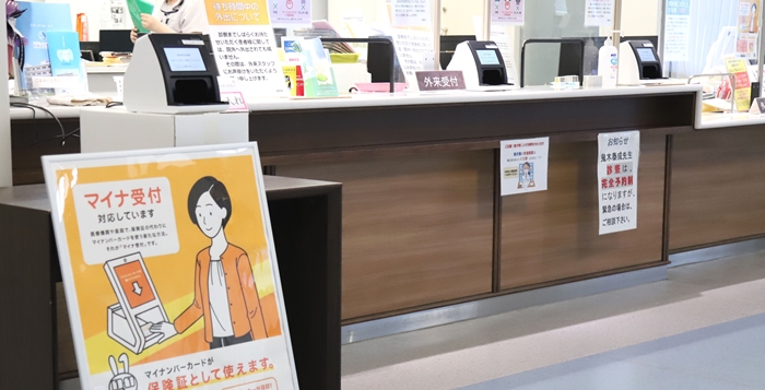 マイナンバーカードのICチップまたは健康保険証の記号番号等により、オンラインで資格情報の確認ができることをいいます。当院においては、令和4年春より運用を開始し、カードリーダーを4台(医科3、歯科1)設置し、システム運用を行っています。